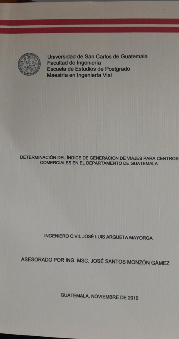 Determinación del índice de generación de viajes para centros comerciales en el departamento de Guatemala / Argueta Mayorga, José Luis