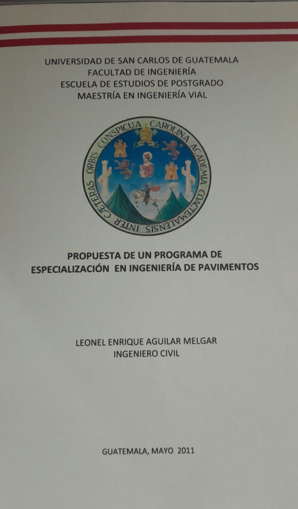 Propuesta de un programa de especialización en ingeniería de pavimentos / Aguilar Melgar, Leonel Enrique