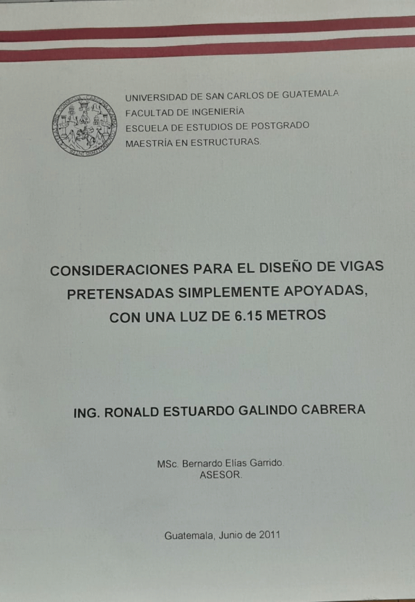 Consideraciones para el diseño de vigas pretensadas simplemente apoyadas, con una luz de 6.15 metros / Galindo Cabrera, Ronald Estuardo