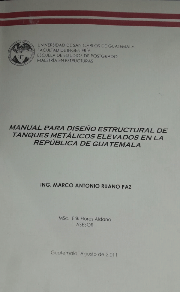 Manual para diseño estructural de tanques metálicos elevados en la república de Guatemala / Ruano Paz, Marco Antonio