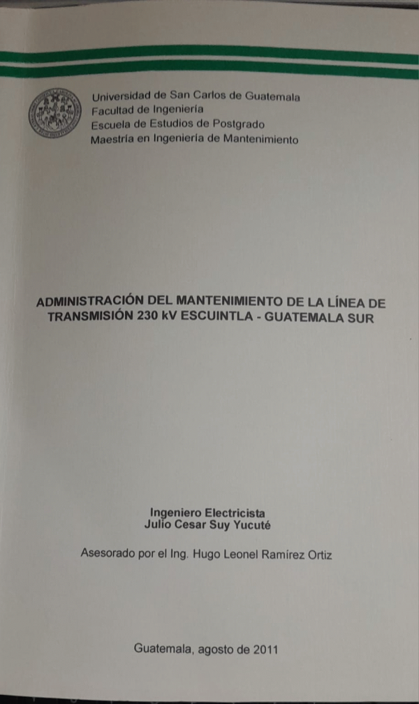 Administración del mantenimiento de la línea de transmisión 230 kV Escuintla - Guatemala Sur / Suy Yucuté, Julio César