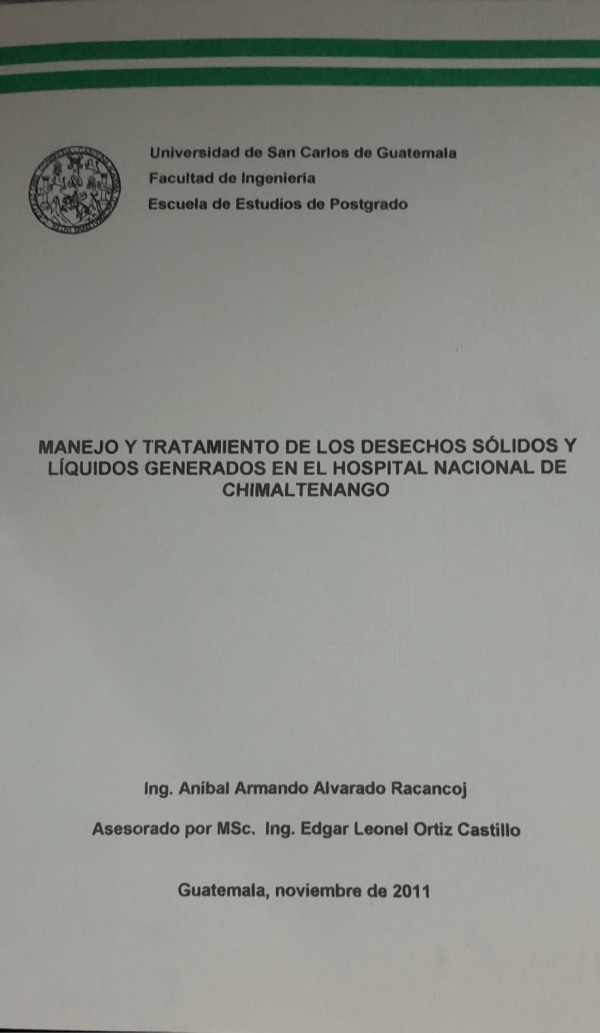 Manejo y tratamiento de los desechos sólidos y líquidos generados en el Hospital Nacional de Chimaltenango / Alvarado Racancoj, Aníbal Armando