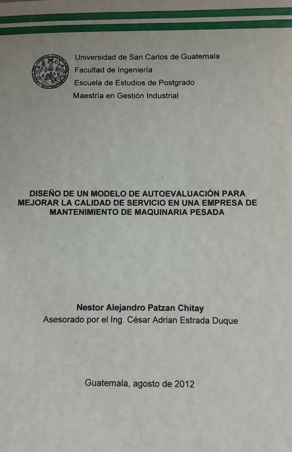 Diseño de un modelo de autoevaluación para mejorar la calidad de servicio en una empresa de mantenimiento de maquinaria pesada / Patzán Chitay, Nestor Alejandro