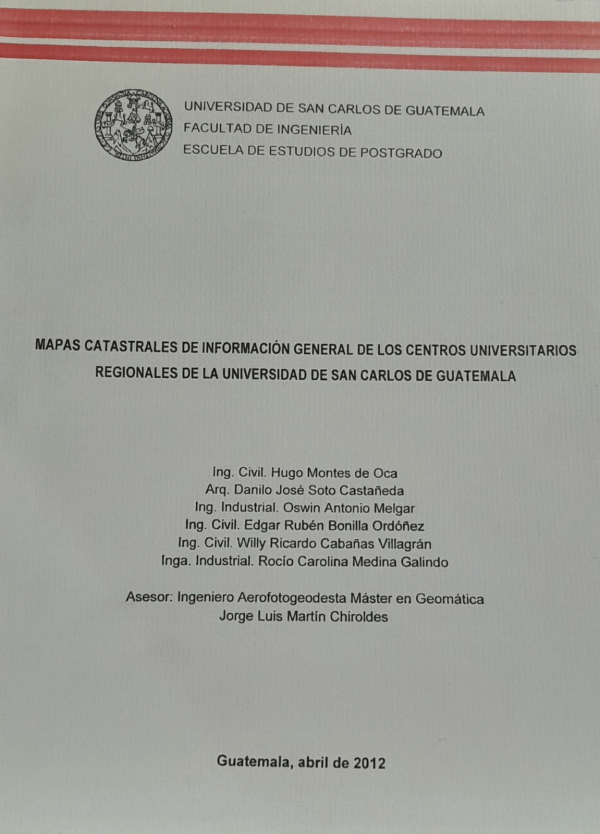 Mapas catastrales de información general de los Centros Universitarios Regionales de la Universidad de San Carlos de Guatemala / Montes de Oca, Hugo