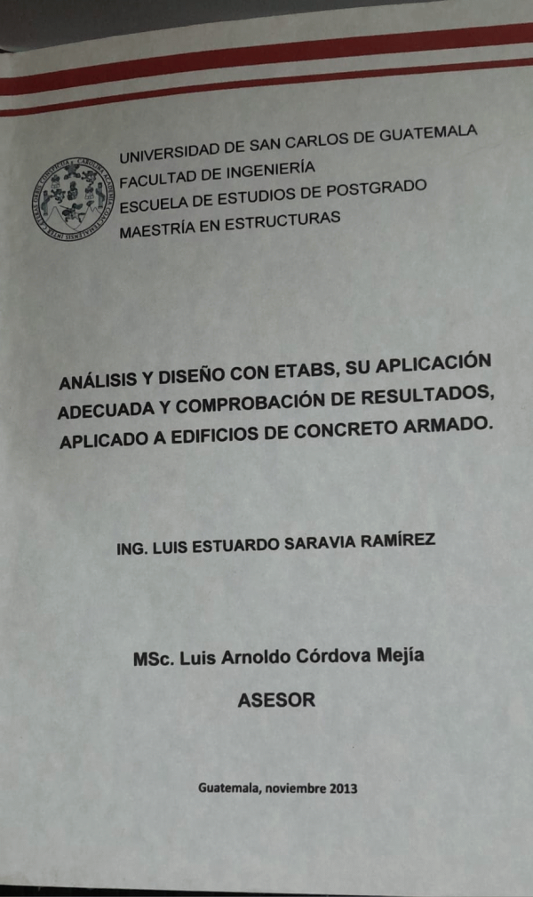 Análisis y diseño con ETABS, su aplicación adecuada y comprobación de resultados, aplicado a edificios de concreto armado / Saravia Ramírez, Luis Estuardo.-