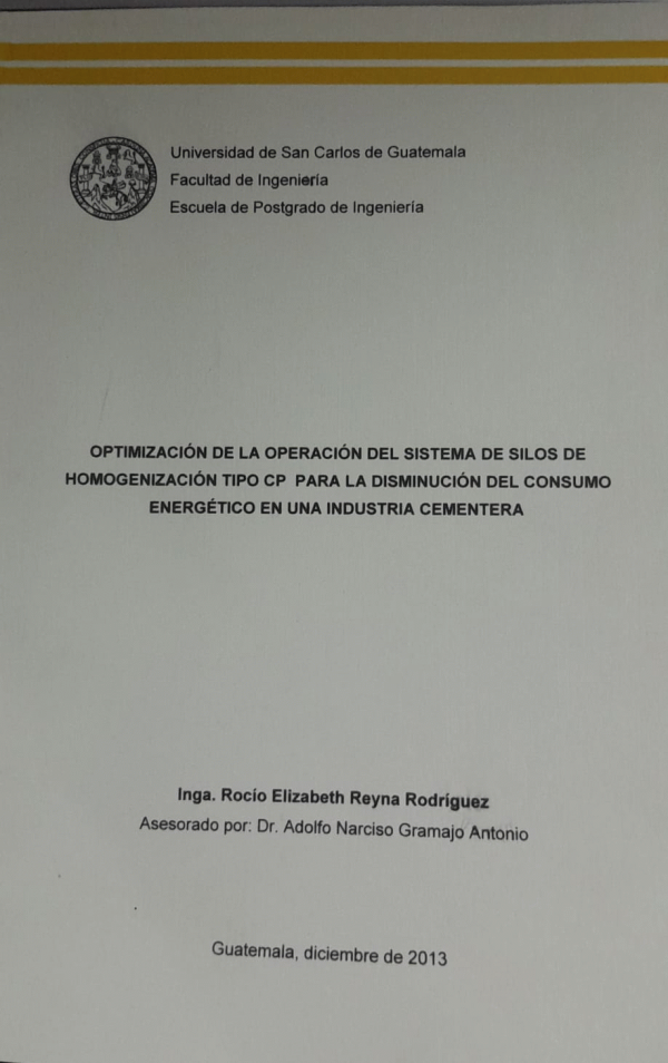Optimización de la operación del sistema de silos de homogeneización Tipo CP para la disminución del consumo energético en una industria cementera / Reyna Rodríguez, Rocío Elizabeth