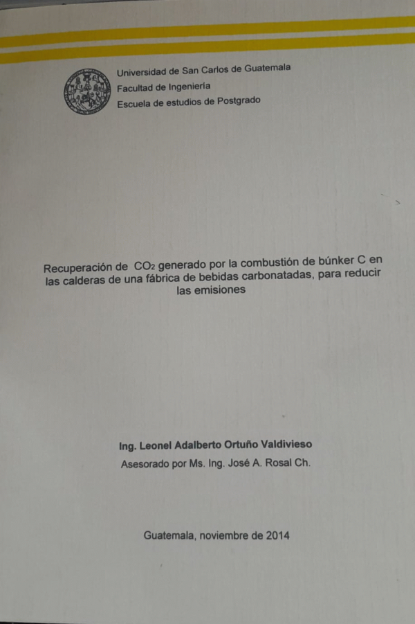 Recuperación de Co2, generado por la combustión de búnker C en las calderas de una fábrica de bebidas carbonatadas, para reducir las emisiones / Ortuño Valdivieso, Leonel Adalberto