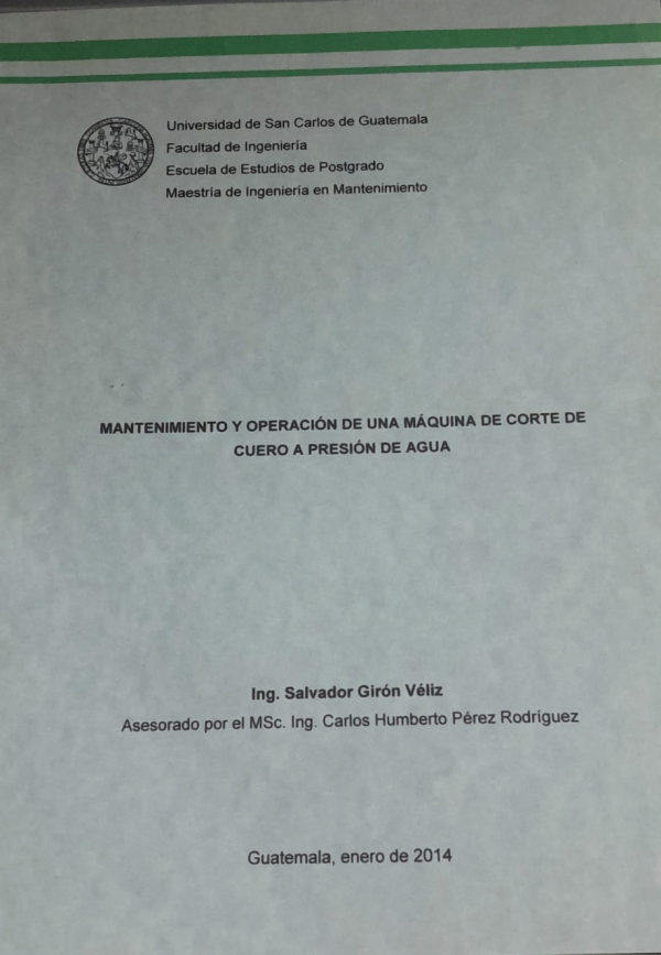 Mantenimiento y operación de una máquina de corte de cuero a presión de agua / Girón Véliz, Salvador