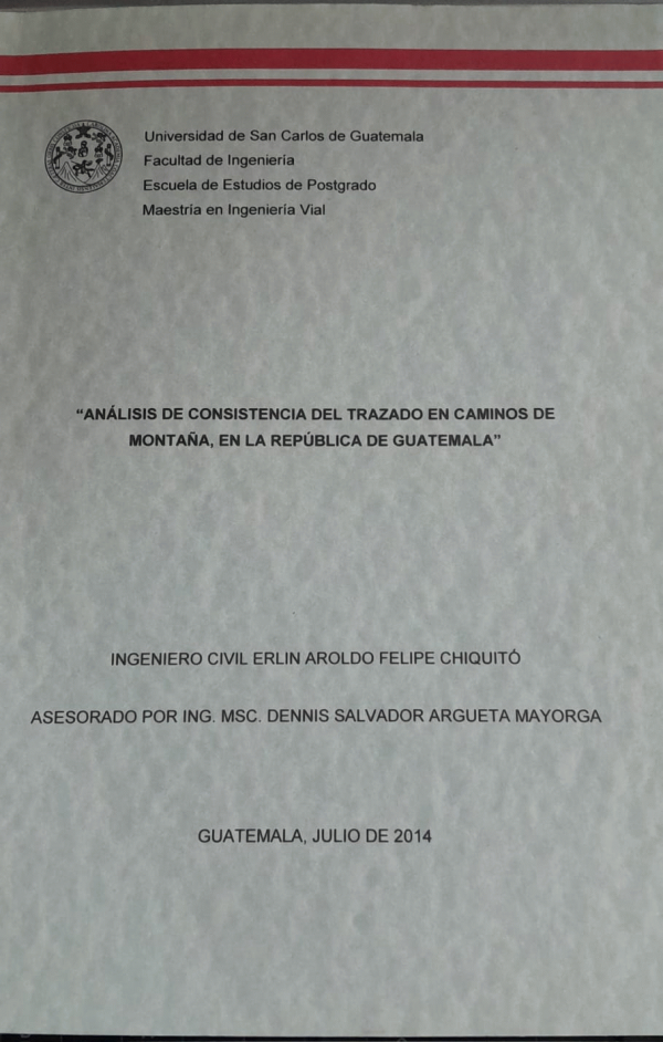 Análisis de consistencia del trazado en caminos de montaña, en la República de Guatemala / Felipe Chiquitó, Erlin Aroldo