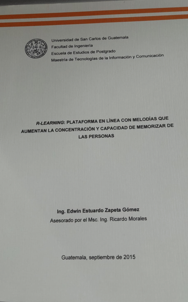 R-Learning: Plataforma en línea con melodías que aumentan la concentración y capacidad de momorizar de las personas / Zapeta Gómez, Edwin Estuardo