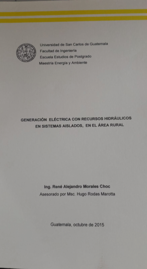Generación eléctrica con recursos hidráulicos en sistemas aislados, en el área rural / Morales Choc, René Alejandro