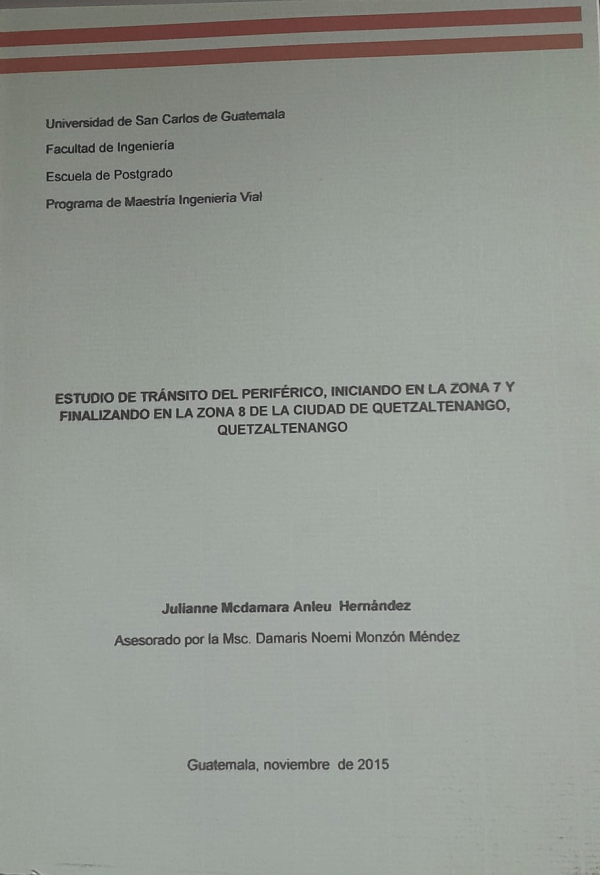 Estudio de tránsito del periférico, iniciando en la zona 7 y finalizando en la zona 8 de la ciudad de Quetzaltenango, Quetzaltenanago / Anleu Hernández, Julianne Mcdamara