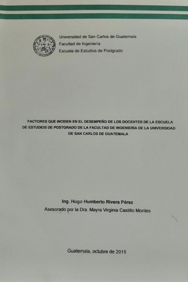 Factores que inciden en el desempeño de los docentes de la Escuela de Estudios de Postgrado de la Facultad de Ingeniería de la Universidad de San Carlos de Guatemala / Rivera Pérez, Hugo Humberto