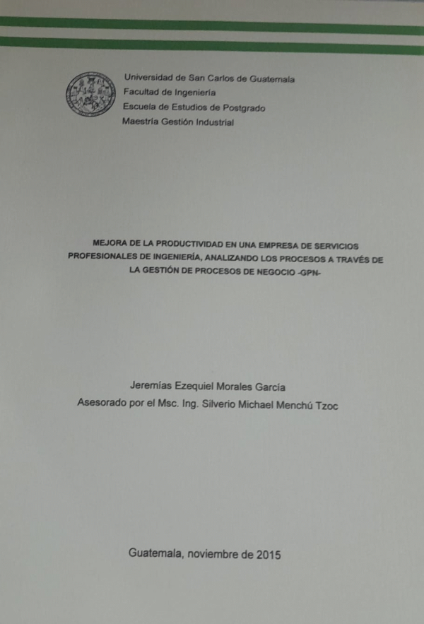 Mejora de la productividad en una empresa de servicios profesionales de ingeniería, analizando los procesos a través de la gestión de procesos de negocio -GPN- / Morales García, Jeremías Ezequiel