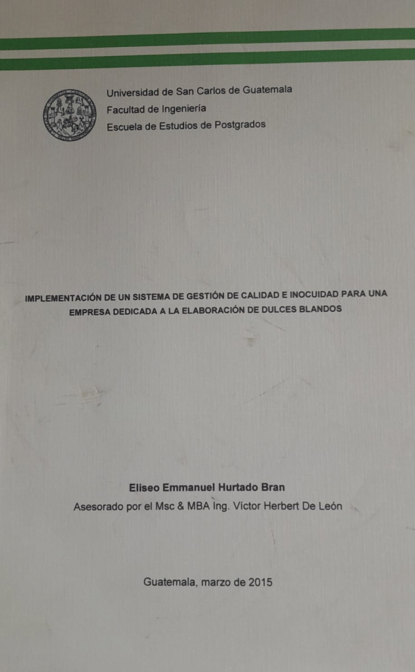 Implementación de un sistema de gestión de calidad e inocuidad para una empresa dedicada a la elaboración de dulces blandos / Hurtado Bran. Eliseo Emmanuel