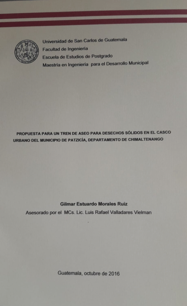 Propuesta para un tren de aseo para desechos sólidos en el casco urbano del municipio de Patzicia, departamento de Chimaltenango / Morales Ruiz, Gilmar Estuardo