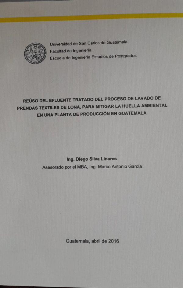 Reúso del efluente tratado del proceso de lavado de prendas textiles de lona, para mitigar la huella ambiental en una planta de producción en Guatemala / Silva Linares, Diego