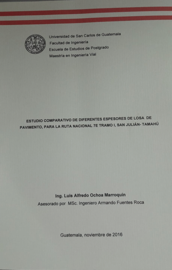 Estudio comparativo de diferentes espesores de losa de pavimento, para la Ruta Nacional 7E tramo I, San Julián-Tamahú / Ochoa Marroquín, Luis Alfredo