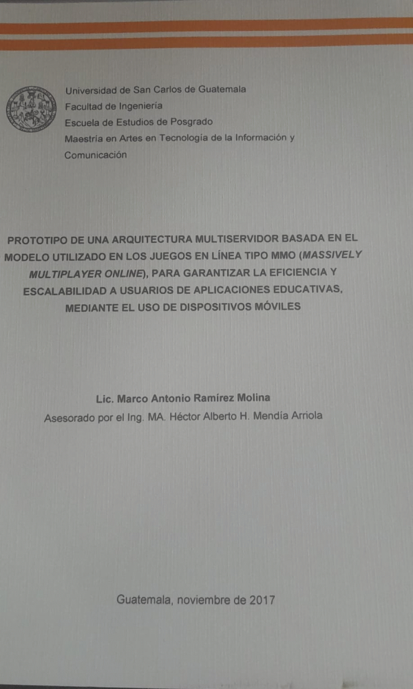 Prototipo de una arquitectura multiservidor basada en el modelo utilizado en los juegos en línea tipo MMO (Massively Multiplayer Online), para garantizar la eficiencia y escalabilidad a usuarios de aplicaciones educativas, mediante el uso de dispositivos móviles / Ramírez Molina, Marco Antonio