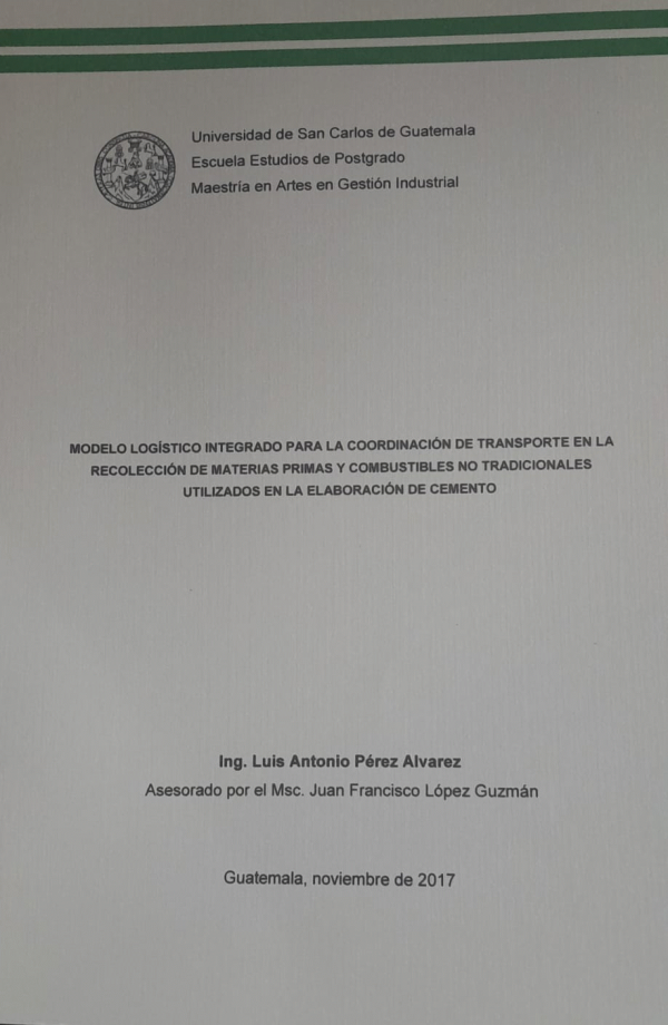 Modelo logístico integrado para la coordinación de transporte en la recolección de materias primas y combustibles no tradicionales utilizados en la elaboración de cemento / Pérez Alvarez, Luis Antonio
