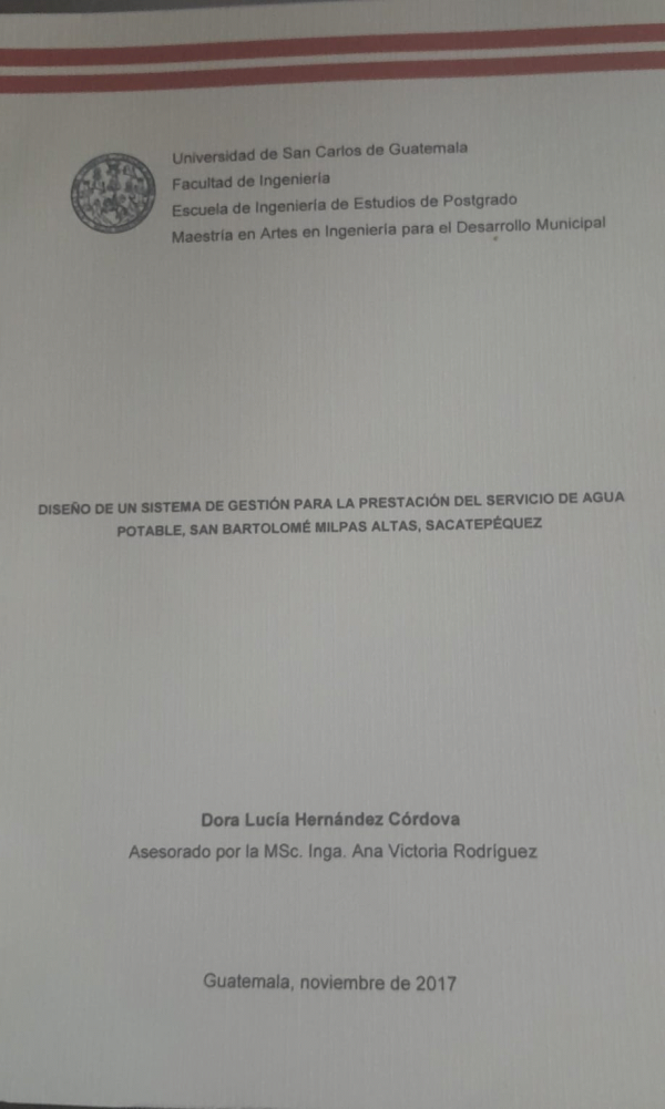Diseño de un sistema de gestión para la prestación del servicio de agua potable, San Bartolomé Milpas Altas, Sacatepéquez / Hernández Córdova, Dora Lucía