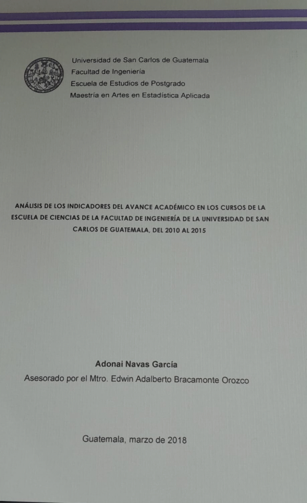 Análisis de los indicadores del avance académico en los cursos de la Escuela de Ciencias de la Facultad de Ingeniería de la Universidad de San Carlos de Guatemala, del 2010 al 2015 / Navas García, Adonai